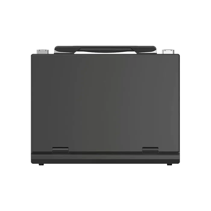 In an all-in-one portable design, the switcher is housed in a robust metal case and has a 13.3″ Full HD IPS display and familiar switching controls, including a T-bar. The display allows for multiview monitoring of six sources along with PVW and PGM with an audio meter. A clock and a menu list are also displayed in the bottom right corner.