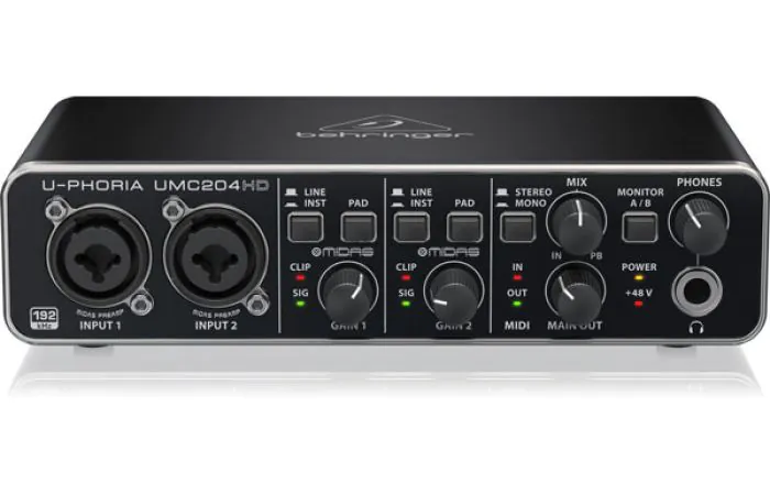 Record the perfect vocal right to your computer-based DAW thanks to the 4 astonishingly pure, world-class MIDAS-designed mic preamps, which include +48 Volt phantom power for condenser microphones, all going through studio-grade 24-Bit/192 kHz converters for the best possible sound quality. Whether you’re a singer-songwriter, producer on the go, or just need a rock-solid interface for running backing tracks at a gig, the ultra-dependable U-PHORIA UMC204HD will help you shine in the digital domain.