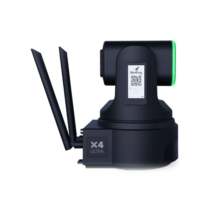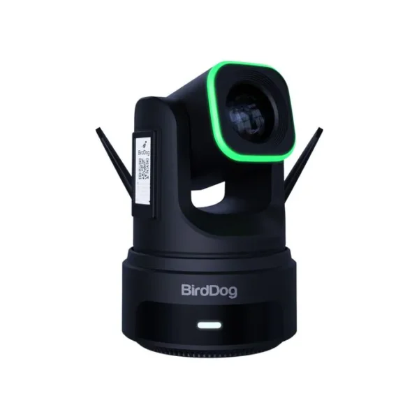 The black X4 Ultra 4K PTZ Camera with AI Tracking from BirdDog is a groundbreaking camera designed for today’s broadcasters and content creators. It features NDI|HX3 technology, enabling high-quality, low-latency video streaming, making it an ideal solution for live productions. Equipped with Wi-Fi 6, the X4 Ultra delivers ultrafast wireless connectivity, while the built-in battery allows for shooting in any location.