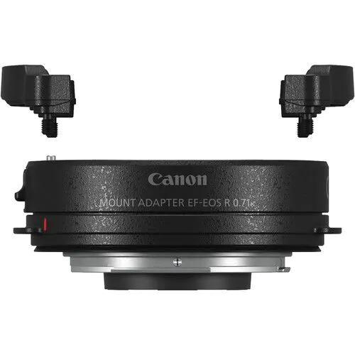 Extending the range of compatible lenses while maintaining their original field of view, the Canon Mount Adapter EF-EOS R 0.71x permits attaching EF-mount lenses to RF-mount cine and mirrorless cameras. Intended for cameras featuring a Super35 sensor size, this adapter also incorporates an optical system to increase the effective angle of view by 0.71x, reducing the effects of a full-frame to Super35 crop factor and increasing the maximum aperture performance by one stop. Electric contacts are also incorporated into the adapter’s design and maintain full communication between the camera and lens, as well as support metadata transmission and use of Dual Pixel AF with select Canon EF lenses. The adapter directly attaches to RF-mount camera bodies, and four screws and a split locking collar are included for a more secure attachment.