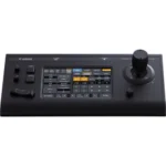 Control your Canon PTZ cameras using IP or serial control with precision controls and a touchscreen display with the RC-IP100 Touchscreen PTZ Joystick Controller from Canon. The controller is compatible with the Canon CR-N300 and CR-N500 PTZ cameras and allows a single operator to control up to 100 cameras from a remote location. The 7″ touchscreen provides configuration and camera settings control.