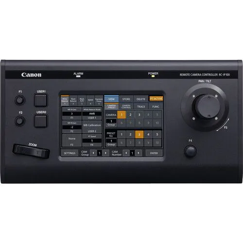 The IP100 is compatible with the proprietary Canon XC IP protocol, not a standard LAN, so you can create a private, secure network to control your cameras using the LAN port. It also features a second RJ45 port that allows you to control the cameras via RS-422 serial protocol. The bright 7″ touchscreen allows you to control and configure up to 100 cameras and it can create and store up to 100 presets.