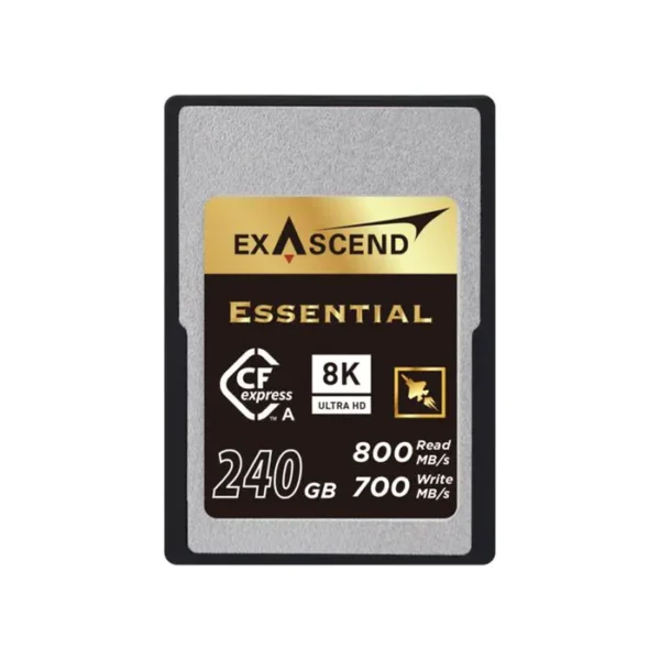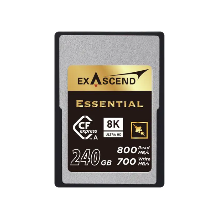 Exascend’s CFexpress Type A is available in 240 GB, 180 GB and 120 GB capacity configurations, featuring premium 3D TLC NAND flash and offering performance of up to 800 MB/s read and 700 MB/s write.