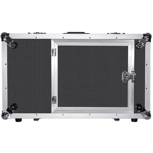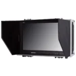 This monitor is designed as a comprehensive all-in-one solution. It comes screwed into a metal case that ensures optimal heat dissipation while providing all-around protection. The lid comes off completely when you unlock it at four locking points, and the remainder can be safely set on a flat surface wherever you are. Via a carry handle on the case, the monitor can be conveniently carried from place to place. A door on the rear of the case opens to provide access to all the connections and the integrated V-mount plate. A large collapsible sunshade is included for use outdoors or in bright indoor conditions. Alternatively, the monitor can be unscrewed from the case and installed into a rack via the built-in handles and built-in rack ears.