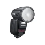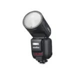 With a powerful 100W output and an innovative round head design, the V100 Flash for Canon from Godox is a compact and easy-to-use flash for portrait photographers. Designed with an integrated sub-flash, the V100 offers a 100W output and is ideal for on-location shooting. Its advanced cooling design allows for continuous shooting, offering 100 flashes at full power. The built-in 2W modeling lamp and automatic 28-105mm zoom range allows for more lighting control. The 1.7 second recycling time and the -7 to 120° tilt with 330° rotation offers greater flexibility and is compatible with Canon E-TTL / E-TTL II systems. Easily control settings with its large touch screen back and charge the batteries directly with a USB-C cable.