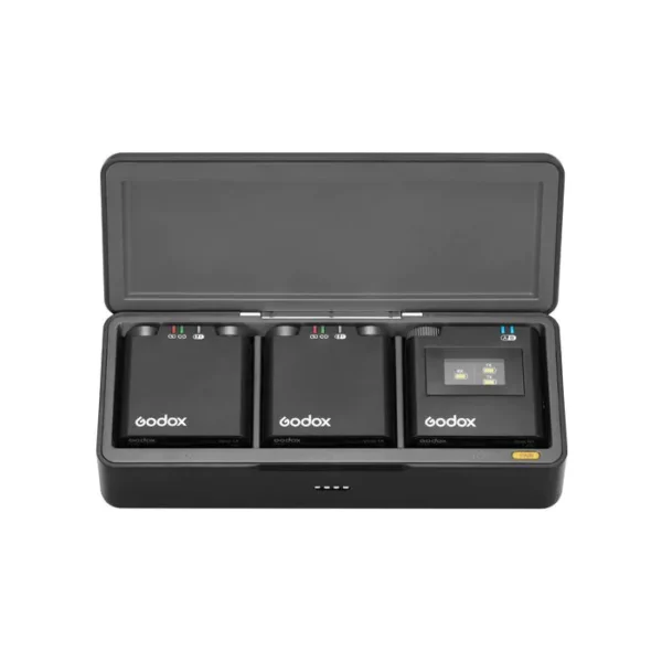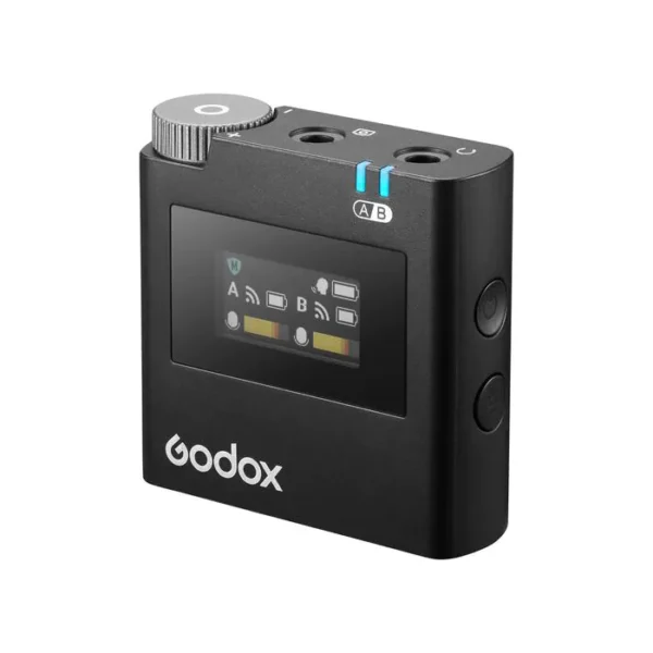 Capture audio from compatible cameras, smartphones, or other recording devices all day using the Virso M2 2-Person Wireless Microphone System from Godox. The system includes two clip-on transmitters with built-in omnidirectional microphones and a dual-channel receiver with 3.5mm TRS connectivity. Functions like a -6 dB safety track and microSD card slots on the transmitter units for backup recording offer safeguards for unforeseen audio clips or environmental disturbances. The system also includes two omnidirectional lavalier microphones, furry windscreens, 3-in-1 USB cable, 3.5mm TRS cable, 3.5mm TRS to TRRS cable, and a charging case to replenish the components.