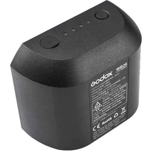 Keep your Godox AD600Pro Flash ready for action with this WB26 Rechargeable Lithium-Ion Battery Pack, which provides up to 360 full-power flashes and has a recycle time of 0.01-0.9 sec. The battery is included with the AD600Pro and offered here as a spare or replacement part.