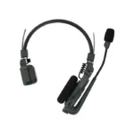 The headsets pair up automatically, and tactile volume buttons allow for fast adjustments—making the system easy to operate. The microphone boom on each headset rotates 360°, allowing for left or right orientation. Rotating the boom arm up or down conveniently mutes the mic when not in use. An LED indicates the system is working and warns you when the battery is low.
