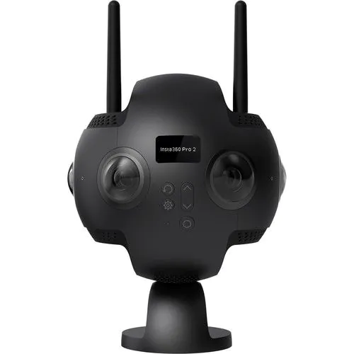 Insta360 Pro II Spherical VR 360 8K Camera. This successor to the Insta360 Pro can record immersive 8K video while streaming in 4K. Insta360 Pro II features include precise 9-axis FlowState stabilization, CrystalView monitoring on standard devices, automatic proxy file creation, and stitch-free editing in Adobe Premiere Pro.