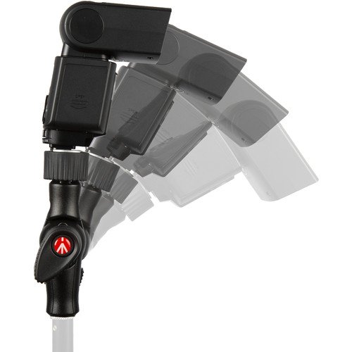 A sturdy, advanced-featured entry into what some call the “swivel” market, the Cold Shoe Tilt Head from Manfrotto sports features that make it ideal for speedlights, compact strobes, and small LED lights. Ergonomics (as well as style) is considered at every stage of fabrication. The tightening knob at the base of the shoe is oversized and knurled for greater torque, as are the tear-shaped tilt and the tightening knob for the 5/8″ receiver. A safety feature of the tilt function is spring action, which prevents the supported light from flopping in its near 180-degree arc when loosened. Lastly, the Tilt Head has an umbrella receptacle for additional modifiers.
