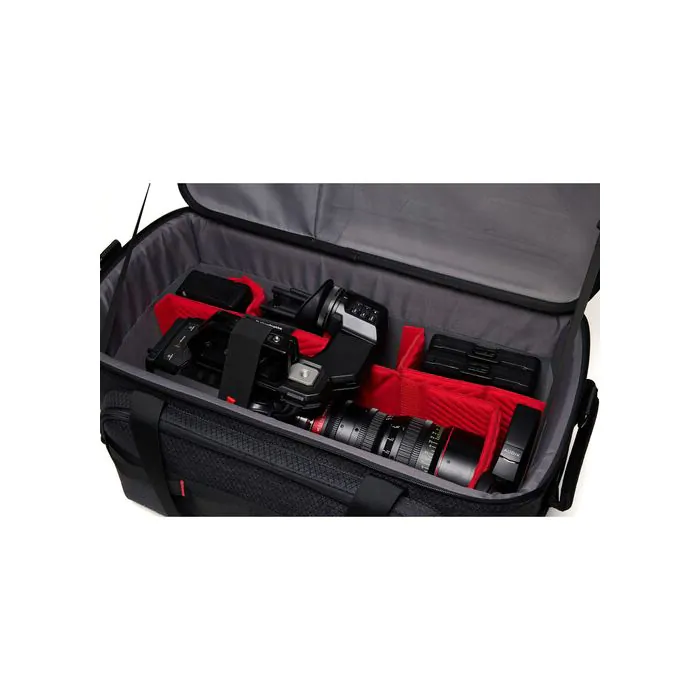 This medium Pro Light Cineloader Bag from Manfrotto is a versatile carrying case that is ideal for videographers operating as their own, single-person team or for cine and broadcast crews who need to safely store and transport various pieces of gear to and from the set. The bag is designed to fit a fully rigged camcorder to avoid having you spend extra time dismounting it, along with its most pertinent accessories. The included M-Guard dividers provide safety for your gear without compromising storage space and a payload capacity of up to 33 lb offers ample flexibility for carrying several necessary production tools.
