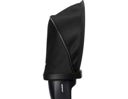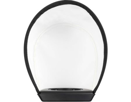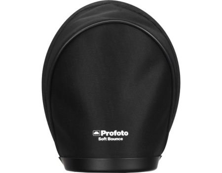 Profoto Soft Bounce for A1 is used with the flash head pointed straight up so that light fills the white interior of the scoop-like modifier, widening the flash’s coverage, and significantly softening the quality of light. The Soft Bounce comes with a bag for storage and transport.
