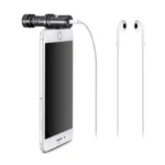 The Rode VideoMic Me-L is a directional microphone designed to operate with iOS devices, including iPhones and iPads. It provides a marked sonic improvement to video recordings, especially when compared to your iOS device’s built-in microphone.