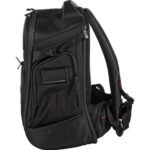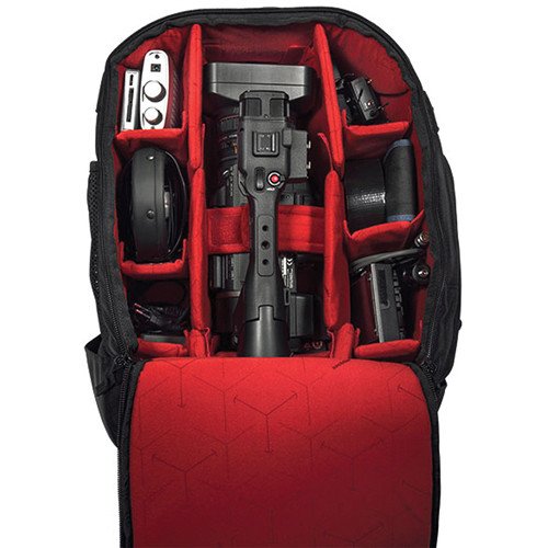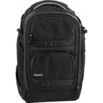 Take your video camera, laptop, and accessories on the road in comfort and style with the black Campack Plus Backpack from Sachtler. A zippered, padded main compartment stores and protects your medium-sized prosumer video camera and select accessories. The main compartment unzips on three sides for easier access. Padded touch-fastening dividers make it easy to organize your gear. At the rear of the backpack is a zippered padded compartment for a 17″ laptop. Compartment interiors have red lining for locating items under low light.