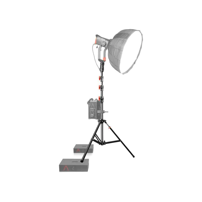 This black-finished Aluminum Triple Riser Combo Stand from SHAPE is well-designed to withstand heavier fixtures with its 68 lb load capacity. With a maximum height of 14.7′, the stand features damped spring risers to prevent any accidental hand pinching during adjustment. Additionally, the riser has a 36″ footprint and an extendable leg that helps maintain balance, particularly useful when dealing with uneven terrain.