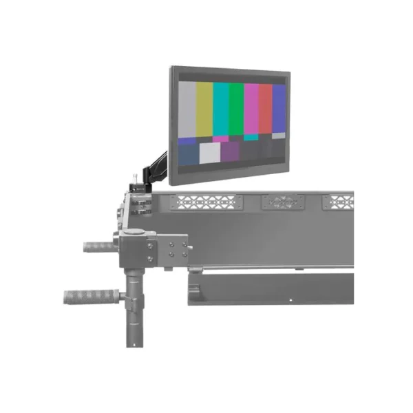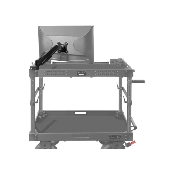 This Spring-Loaded Articulated Monitor Arm from SHAPE is compatible with the SHAPE Wagon camera cart. Monitors with 75 or 100mm VESA patterns can be easily mounted on one of your camera cart’s corners using an optional 5/8″ baby pin.
