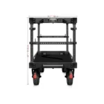 The cart breaks down into a flat transportable flight case with a travel handle and built-in wheels.
