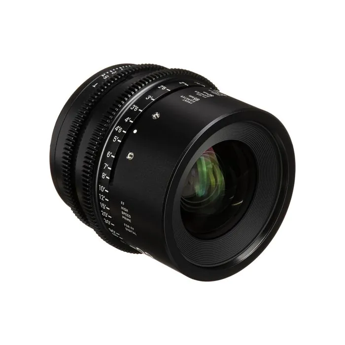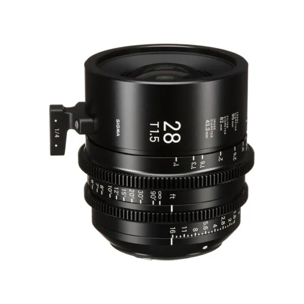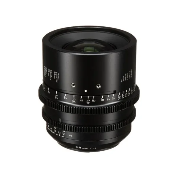Sigma‘s FF High Speed Prime Lenses combine the same high-quality optics and mechanics of their Global Vision still line in a cine-oriented design. This 28mm Canon EF-mount prime is a wider focal length in the series, offering full-frame sensor coverage, 6-8K resolution, and a T1.5 aperture in a compact, relatively lightweight form; it is also available in Sony E and PL mounts. A common 95mm front diameter and similar physical attributes across the lens line make it easier and quicker to mount lens accessories such as matte boxes, follow focuses, and lens control motors.