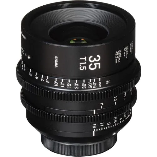 Sigma‘s FF High Speed Prime Lenses combine the same high-quality optics and mechanics of their Global Vision still line in a cine-oriented design. This 35mm Sony E-Mount prime is a mid-range focal length in the series, offering full-frame sensor coverage, 6-8K resolution, and a T1.5 aperture in a compact, lightweight form; it is also available in Canon EF and PL mounts. Electronic contacts in the mount provide lens data communication between the lens and the camera. A common 95mm front diameter and similar physical attributes across the lens line make it easier and quicker to mount lens accessories such as matte boxes, follow focuses, and lens control motors.