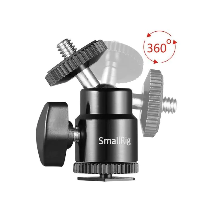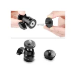 This Camera Hot Shoe Mount with 1/4″-20 Screw Ball Head 2-Pack from SmallRig includes two ball heads, adapters, screws, wingnuts, and Allen wrenches. Use them to attach a variety of gear to your camera shoe, tripod, or select other gear such as light stands. Photographers will appreciate the aluminum alloy construction and 360° rotation.