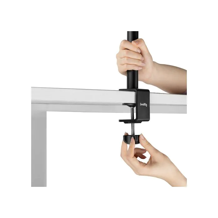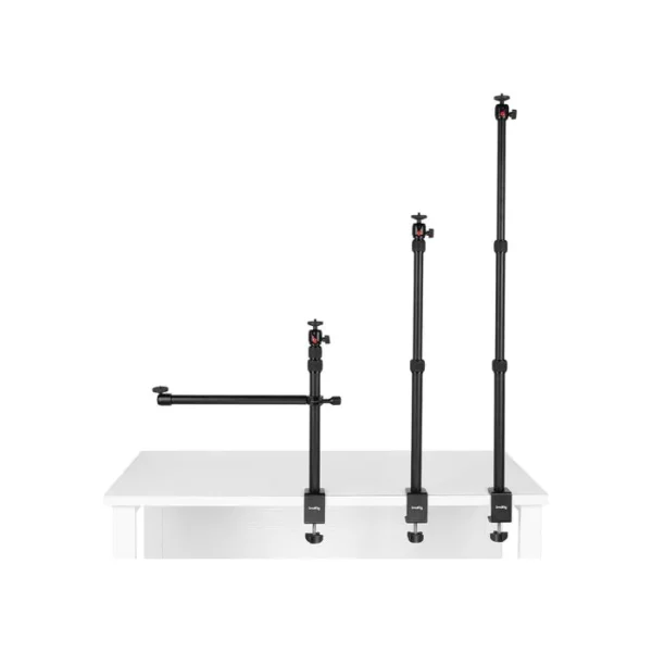 Mount your camera onto your desk for a sturdy yet adjustable shot for vlogging, streaming video, or photos with the Encore DT-30 Desk Mount with Holding Arm from SmallRig. The mount consists of a vertical rod that mounts onto a desk or surface up to 2″ thick, and there is a horizontal bar that mounts perpendicularly onto the vertical rod with a ball head on the end.