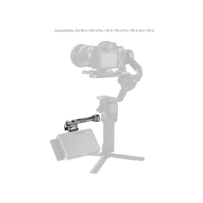 Quickly mount and detach an onboard monitor, mic, or accessory on your gimbal using the HawkLock H21 Monitor Support for Select DJI Stabilizers from SmallRig. Compatible with DJI RS 2, RSC 2, RS 3, RS 3 Pro, RS 3 Mini, RS 4, and RS 4 Pro gimbals, this monitor support features the secure, bidirectional HawkLock quick release system and up to 165° rotation for optimal viewing. Mounts on the support include an anti-twist 1/4″-20 thumbscrew, a NATO rail, a cold shoe receiver, and 1/4″-20 threads.