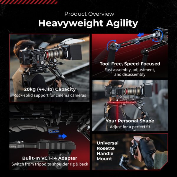 Combining rapid deployment, ergonomic comfort, and professional expandability, the SmallRig HawkLock VCT-14 Type Shoulder Rig (SR009) delivers a dependable handheld operating solution designed to improve stability, efficiency, and creative control for modern filmmakers.