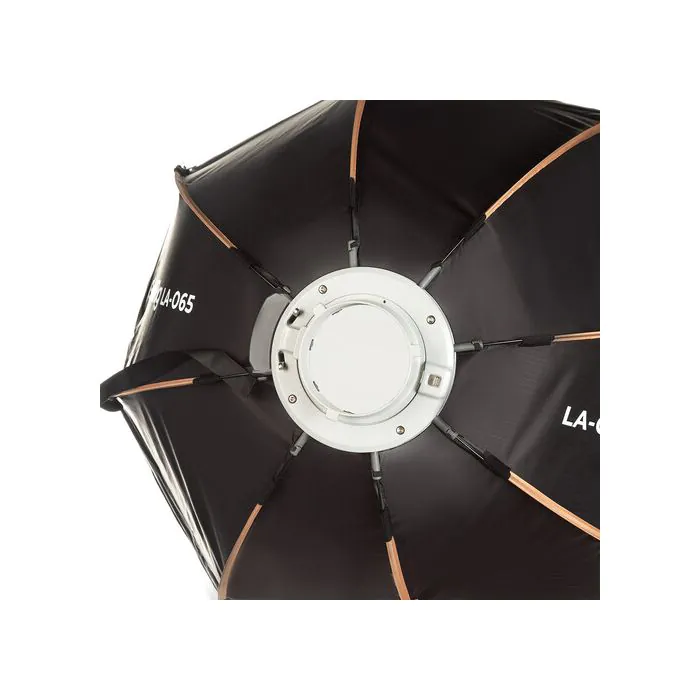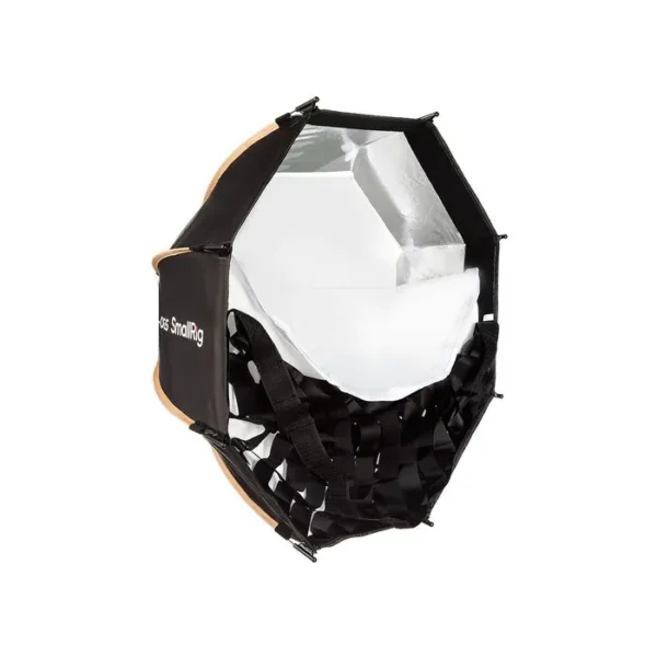 This 25.6″ LA-O65 Octagonal Softbox from SmallRig provides a soft, pleasing quality of light, producing natural-looking catchlights in the eyes of your subject. The softbox has a large surface area to offer a wraparound effect, which is especially useful in close-up situations. The included 45° fabric grid attaches to the softbox with touch-fasteners and provides additional directionality to your light’s output, and the diffusers provide a softer output.