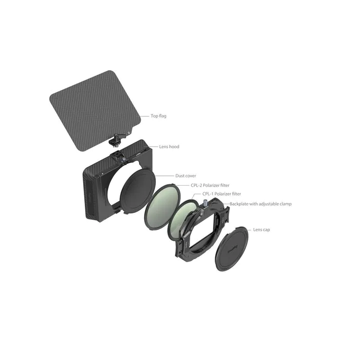 Add a compact, lightweight matte box to your rig with the Matte Box with Adjustable Clamp and VND Kit from SmallRig. The clamp-on matte box fits small mirrorless or DSLR cameras and is made from durable but lightweight carbon fiber material. It includes two round SmallRig CPL filters that can create a VND effect when used together with the gearing in the hood.