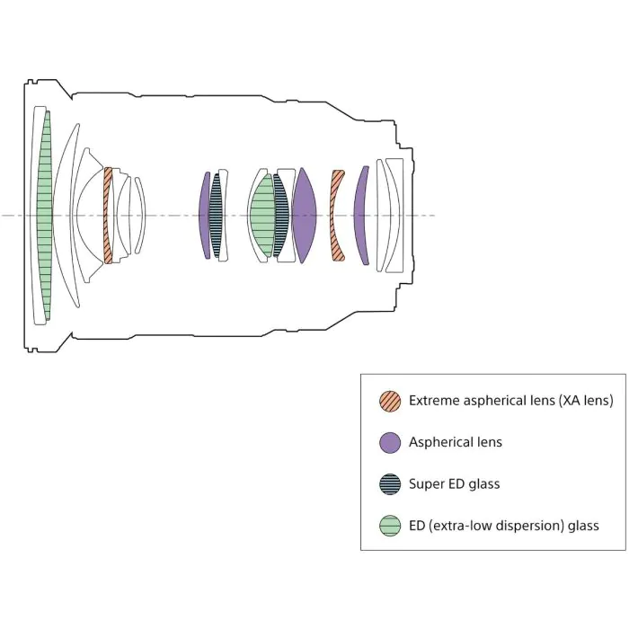 - Two ED (extra-low dispersion) and two Super ED elements effectively suppress chromatic aberrations and color fringing for greater clarity and color fidelity.
