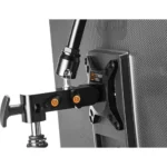 Mount your monitor to any standard Baby Pin with the Rock Solid VESA Studio Monitor Mount from Tether Tools. Using a VESA compliant mount, the Vu-2 will accept monitors weighing up to 85 pounds and enable them to be conveniently mounted to a C-stand or other stand that has a 5/8″ pin. Once secured, the joint can be loosened to tilt the monitor up to ±90°. Additional 5/8″ accessory receptors are available for compatible arms, mounts and accessories to the top of the Vu-2.