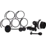 Included with the follow focus are five flexible gears for your lens and 0.5, 0.6, and 08 MOD drive gears. And if you like to operate your system from a distance, a crank handle and 12” whip are both included.