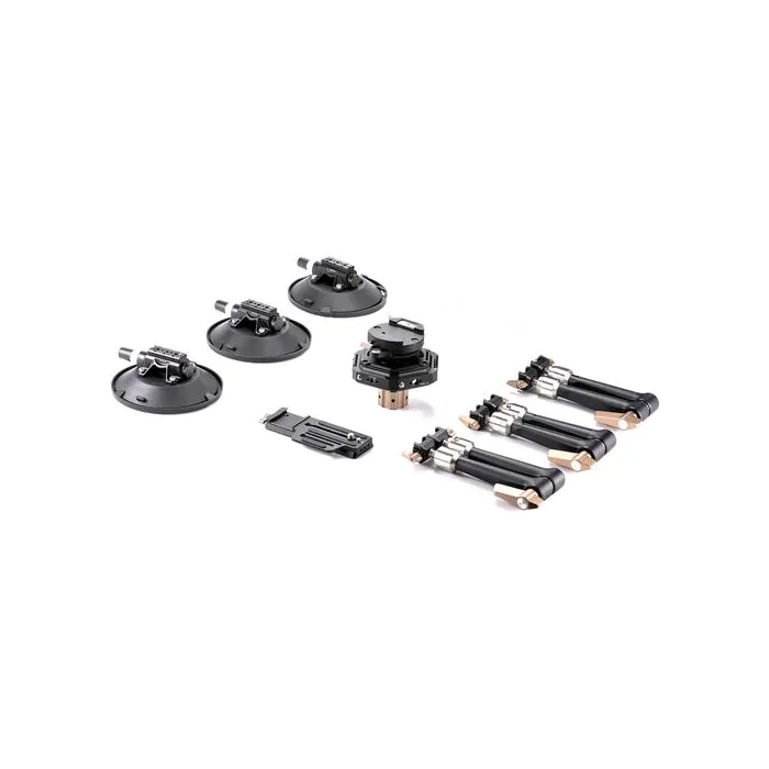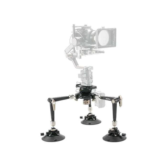 Capture smooth, dynamic action shots from the interior or exterior of a vehicle with the Hydra Articulating Car Mounting System with Electronic Suction Cups from Tilta. The system includes three electronic suction cups with NATO rail mounts, three heavy-duty articulating arms, and a 75mm ball head that can be adjusted up to 15° to achieve your desired shooting angle. The battery-powered suction cups provide real-time monitoring of the pressure and will automatically apply more suction in case of a leak.