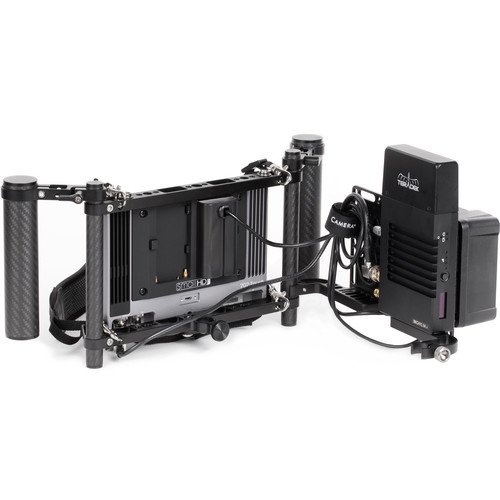 The cage is based on a universal plate system that mounts your monitor using 1/4″-20 mounting points on the side, top, or bottom of your monitor. In addition to holding your monitor, the cage allows for the mounting of a separately available V-mount or Gold mount plate for battery power, and it also leaves plenty of room for wireless equipment, so you can remain untethered on set.