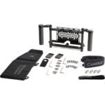 The Director’s Monitor Cage v3 from Wooden Camera accepts virtually any LCD on-camera monitor up to 9″, allowing it to be securely held and carried by a director or anyone who needs to have a personal monitor during a shoot. Featuring dual carbon fiber handgrips, aluminum rods, a padded neck strap, and a swing-away design for easy access to the back, this cage makes carrying a small monitor both simple and comfortable.
