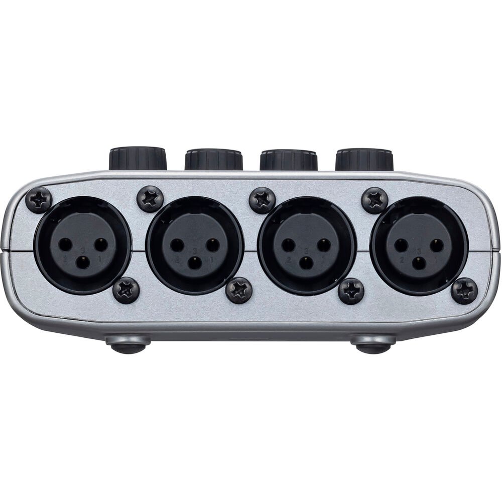 The Zoom PodTrak P4 features four high-gain XLR microphone inputs, allowing hosts and guests to connect professional dynamic or condenser microphones with ease. Each input includes independent gain control and +48V phantom power, ensuring compatibility with a wide range of studio microphones commonly used for broadcast and podcast production.