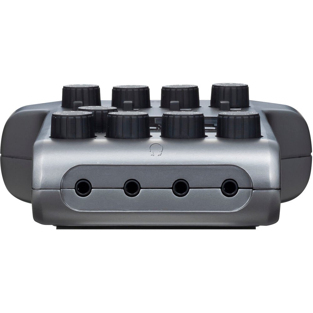 The recorder provides four dedicated headphone outputs, each with independent volume control. This allows hosts and guests to monitor their audio comfortably while maintaining clear communication throughout the recording session.